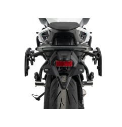Il kit è sviluppato per la moto in configurazione standard e non risulta testato con scarico, portatarga o indicatori aftermarket; va quindi verificata sempre la distanza delle borse dalla zona calda e il corretto orientamento delle frecce.