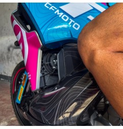 I deflettori paracalore SV3D per CF-MOTO 800MT-X dal 2024 sono progettati per deviare il flusso di aria calda proveniente dal motore lontano dalla zona gambe del pilota. Questo accessorio contribuisce a ridurre il calore percepito durante la guida, soprattutto nelle percorrenze lente, nel traffico urbano o durante i viaggi estivi. Il design segue le linee della carena della 800MT-X, garantendo integrazione estetica e installazione semplice senza modifiche strutturali.