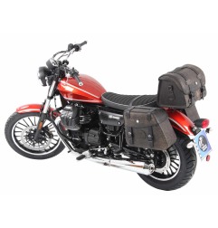 Questo telaio portaborse laterale Hepco&Becker è un Leatherbag tube carrier Cutout specifico per Moto Guzzi V9 Bobber/Special Edition dal 2021: nasce per l’uso con borse in pelle Rugged Cutout a fissaggio interno. La struttura è in solido acciaio tubolare con rivestimento plastico nero ad alta qualità; in confezione è incluso il materiale di montaggio. Il sistema prevede una chiusura rapida montata all’interno della borsa: se portaborse e borse vengono acquistati insieme, la chiusura viene adattata al telaio; se le borse arrivano dopo, può essere richiesta la disponibilità del portaborse per l’adattamento professionale. Carico raccomandato: 5 kg per lato. Nota tecnica: incompatibile con borse/attacchi C-Bow.
