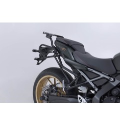 Il sistema borse laterali Legend Gear LC Black Edition BC.HTA.05.031.20100 è una soluzione completa per il trasporto bagagli su Suzuki GSX-8T e GSX-8TT dal 2025. Il kit include borse laterali LC1 e LC2 con volume totale di 27 litri, abbinate a telai laterali SLC specifici per il modello, progettati in base alla forma del codone e all’altezza dello scarico. Le borse utilizzano un sistema di aggancio rapido che permette la rimozione senza utensili. I materiali tela cerata e pelle sintetica napalon assicurano resistenza all’usura, mentre le tasche interne impermeabili migliorano la protezione del contenuto.