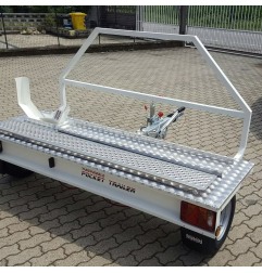 Il Pocket Trailer è un carrello moto rimorchio trasversale con timone reclinabile, progettato per ridurre al minimo gli ingombri e permettere di sistemare in un box auto auto, rimorchio e moto. Ha una portata complessiva di 750 kg, pianale da 220×75 cm con altezza di 50 cm, ed è disponibile con ruote 145/80R10 o 195/55R10.