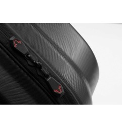 Il kit comprende due valigie AERO ABS da 25 litri ciascuna, per una capacità totale di 50 litri. Le borse sono realizzate in plastica ABS resistente e si distinguono per il profilo aerodinamico, la superficie moderna e la facilità di pulizia. Con un peso di soli 1,8 kg per valigia, il sistema è particolarmente indicato per chi utilizza la moto su strada e desidera una soluzione più leggera rispetto alle tradizionali valigie in alluminio.