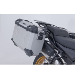 Contenuto confezione: Valigia TRAX ADV L 45 l sinistra, valigia TRAX ADV M 37 l destra, telai laterali PRO, kit adattatore, kit serrature con antifurto, limitatori di apertura, custodie, portachiavi Multitool, istruzioni, materiale di montaggio