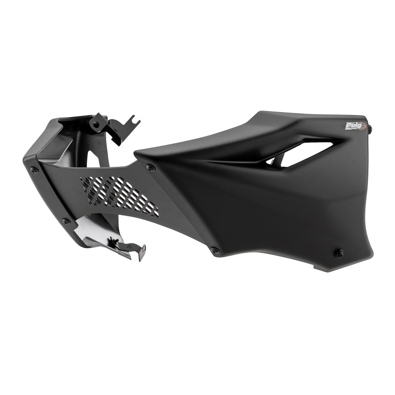 Progettato per migliorare l’aerodinamica e offrire protezione aggiuntiva nella zona inferiore della moto. Disponibile in tre finiture: carbon look, nero opaco e nero lucido. Il montaggio avviene senza necessità di modifiche permanenti e il kit di montaggio è incluso nella confezione. Omologazione T.U.V. garantita.