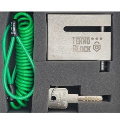 TeknoBlock TKBMB-80 (linea TitanLok) è un antifurto moto tipo bloccadisco “blindato” formato 80 (8 pollici), pensato per bloccare la rotazione della ruota agendo sul disco freno. Struttura in acciaio temprato con chiusura meccanica a chiave; progettato come soluzione portatile da usare su moto e scooter con freno a disco. In confezione: cavo reminder a spirale (per collegamento visivo fino al manubrio) e sacchetto per riporlo. Dati da verificare prima dell’acquisto/uso: presenza e posizione dei fori del disco, spazio disponibile vicino alla pinza, eventuale interferenza con sensore ABS.