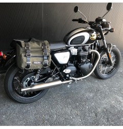 Bags & Bike propone questa coppia di borse laterali modello SAHARA VERDE per Triumph Bonneville T100 dal 2020, specificando la compatibilità anche con il modello 2026. La costruzione abbina canvas idrorepellente e pelle idrorepellente, con scatola interna rigida per mantenere meglio forma e sostegno. La capacità è variabile, con 14/20 litri per borsa, quindi adatta sia all’uso quotidiano sia a un impiego più turistico.