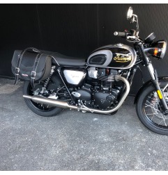Bags & Bike propone questa coppia di borse laterali modello CLASSIC NERA per Triumph Bonneville T100 dal 2020, specificando la compatibilità anche con il modello dal 2026 in poi. Ogni borsa ha una capacità di 20 litri ed è costruita con PVC, PU e pelle idrorepellente. La presenza di due tasche separate, scatola interna rigida, fodera interna e sistema di aggancio e sgancio la rende adatta a chi cerca una soluzione pratica per uso quotidiano e turismo leggero.