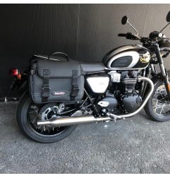 Bags & Bike propone questa coppia di borse laterali modello ADVENTUR per Triumph Bonneville T100 dal 2020, specificando la compatibilità anche con il modello 2026. La struttura utilizza PVC imbottito, Cordura certificata e PVC Kosmos, con scatola interna rigida, due scomparti separati e lampo idrorepellente. La capacità è di 30 litri per borsa, quindi adatta a chi cerca una soluzione più capiente per uso quotidiano e turismo..