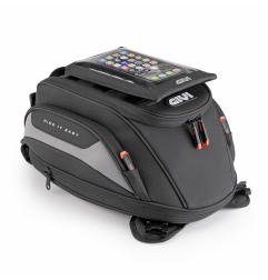 La Givi EASY04 è una borsa da serbatoio universale della linea EASY-T Range, realizzata in poliestere 600D ad alta resistenza con inserti in PU. Offre una capacità di 20 litri ed è dotata di fissaggio magnetico o tramite cinghie, compatibile con la maggior parte dei serbatoi metallici e non metallici. Dispone di tasche laterali, finestra superiore trasparente per smartphone o navigatore e copertura antipioggia inclusa. Ideale per moto e scooter, combina funzionalità, capienza e praticità di utilizzo.