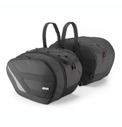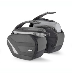 Le Givi EASY10 sono una coppia di borse laterali morbide espandibili da 27 a 35 litri, progettate per offrire ampia capacità, sicurezza e praticità nei viaggi in moto. Realizzate in Poliestere Ripstop 600D e PU laminato, resistono a raggi UV, abrasioni e pioggia. Si fissano con cinghie a strappo sotto sella e possono essere integrate con il sistema Remove-X per un montaggio più rapido. Dispongono di sacche interne impermeabili, zip lucchettabili, maniglia per il trasporto e inserti riflettenti per maggiore visibilità. Il cordino elastico superiore permette di assicurare ulteriori carichi esterni.