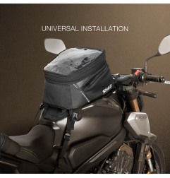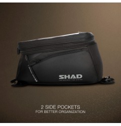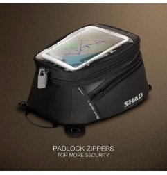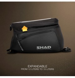 La Shad SL20 (X0SL20F) è una borsa da serbatoio espandibile progettata per offrire grande capacità di carico, passando da 12 a 15 litri, mantenendo dimensioni compatte. Dotata di tasca superiore trasparente touchscreen per mappe, GPS o tablet, integra elementi riflettenti ad alta visibilità e un sistema di fissaggio universale tramite cinghie agganciabili a telaio, pedane o manubrio. Il materiale tecnico è resistente a 1.500 ore di esposizione UV. Convertibile in zaino grazie agli spallacci integrati, include tasche laterali, maniglia di trasporto, tracolla e comparti interni ben organizzati.