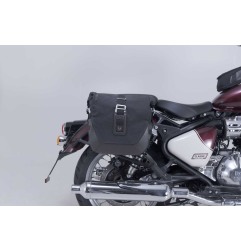 Il sistema borse laterali Legend Gear LC di Sw-Motech unisce uno stile rétro a funzionalità moderne. È composto da supporti laterali SLC (sinistro e destro) + borse LC1 / LC2, con aggancio rapido ai supporti. Le borse sono realizzate in Napalon (pelle sintetica) e canvas cerato, con fodera interna impermeabile e sistema roll-top. Il sistema è progettato per un montaggio preciso sui supporti dedicati, compatibile con l’estetica classica della moto.