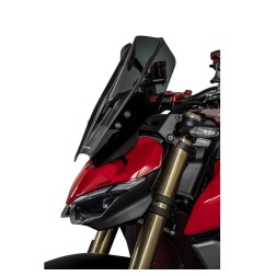 Il cupolino sport Isotta per Ducati Streetfighter V2 dal 2025 è un accessorio progettato per migliorare aerodinamica, stabilità e comfort di guida su naked sportive. Realizzato in PMMA (plexiglass) da 3 mm, garantisce resistenza, leggerezza e stabilità alle alte velocità. Le dimensioni 370 mm di altezza e 290 mm di larghezza lo rendono un cupolino compatto ma efficace. La presenza della feritoia frontale consente una gestione ottimizzata del flusso d’aria, riducendo le turbolenze e migliorando il comfort del pilota senza compromettere la visibilità. Il design è studiato per integrarsi con la linea della Ducati Streetfighter V2, mantenendo un’estetica aggressiva e sportiva. Disponibile in trasparente, fumè chiaro e fumè scuro, è ideale per uso stradale, guida sportiva e commuting.