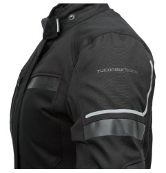 La Tucano Urbano 4STROKE EVO LADY HYDROSCUD è una giacca moto donna 12 mesi: membrana impermeabile/traspirante 5.000 mm / 5.000 g/m²/24h, fodera termica removibile 75 g, tessuto Oxford alta tenacità con rinforzi ripstop ai gomiti e inserti softshell stretch. Dotata di COMFORT PROTECTION SYSTEM con protezioni CE Livello 2 su spalle e gomiti e predisposizione paraschiena (AEROSOFT L1, D3O L1/L2). Classe A EN17092:2020, taglio femminile, numerose regolazioni e tasche cargo a tenuta stagna.