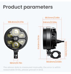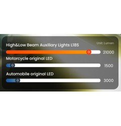 Le luci ausiliarie moto LOBOO L18S rappresentano una soluzione tecnica avanzata per chi cerca illuminazione supplementare ad alte prestazioni. Il sistema combina lente ad alta efficienza luminosa e design della coppa riflettente per ottenere un’area di illuminazione più razionale, con copertura migliorata e riduzione delle zone d’ombra. Il flusso luminoso da 21000LM assicura visibilità elevata su strada e off-road. L’utente può personalizzare l’illuminazione tramite 8 livelli di luminosità e temperatura colore, adattandola a pioggia, nebbia o guida notturna. Le modalità multiple includono abbagliante, anabbagliante, combinata e 3 modalità di avviso per aumentare la sicurezza passiva. La certificazione IP68 e la gestione intelligente della temperatura garantiscono affidabilità anche in ambienti estremi.