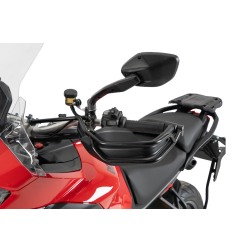 Il paramani tubolare Hepco & Becker 42127679 00 01 è sviluppato specificamente per la Ducati Multistrada V2 e Multistrada V2 S dal 2025. Il kit comprende protezione sinistra e destra in acciaio tubolare con finitura nera verniciata a polvere, progettata per integrarsi con il manubrio originale della moto. La struttura offre una protezione aggiuntiva per mani, leve freno e frizione e raccordi del manubrio, contribuendo anche alla stabilizzazione dei paramani originali. È una soluzione particolarmente utile per chi utilizza la moto in viaggio, su sterrato o in presenza di ostacoli che potrebbero colpire direttamente i comandi.