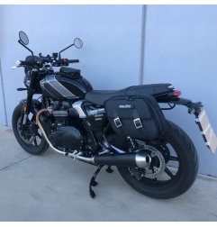 Le Bags & Bike NEW PERFECT sono borse laterali moto dedicate alla Triumph Speed Twin 900 dal 2025, progettate per integrarsi con la linea della moto e offrire uno spazio di carico utile senza aumentare troppo l’ingombro laterale. I materiali comprendono superfici anti sfregamento, resistenti a benzina, solventi e raggi UV grazie al rivestimento in PVC liscio tecnico. Il sistema di aggancio e sgancio rapido consente di montare e rimuovere facilmente le borse, rendendole adatte a tragitti quotidiani, commuting e turismo leggero.