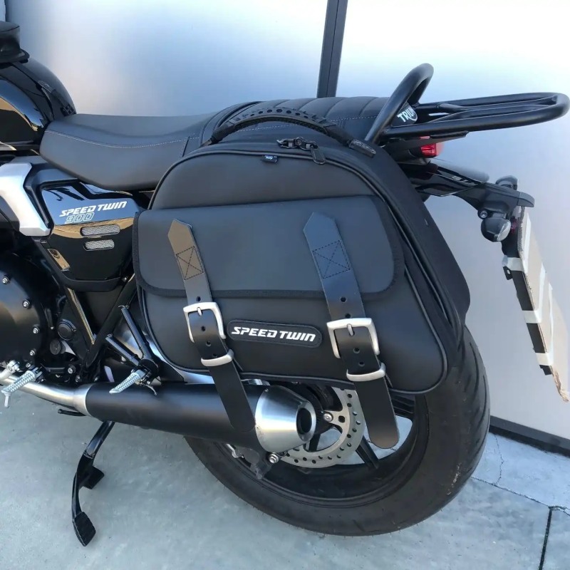 Le Bags & Bike EXPLORER nere per Triumph Speed Twin 900 dal 2025 sono borse laterali dedicate alla configurazione con portapacchi originale Triumph, pensate per chi cerca una soluzione di carico compatta ma adatta anche al turismo leggero. Ogni borsa offre una capacità di 20 litri ed è realizzata in Cordura certificata, PVC e inserti in pelle idrorepellente. La struttura è rinforzata da una scatola interna rigida che mantiene forma e stabilità anche a pieno carico. Sono inoltre presenti lampo idrorepellente, cuffia antiacqua e sistema di aggancio e sgancio rapido.