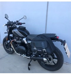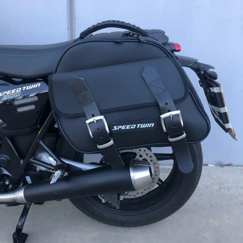 Le Bags & Bike EXPLORER nere per Triumph Speed Twin 900 dal 2025 sono borse laterali sviluppate per chi desidera una soluzione di carico compatta ma robusta, adatta a uso quotidiano e turismo leggero. Ogni borsa offre una capacità di 20 litri ed è realizzata in Cordura certificata, PVC e inserti in pelle idrorepellente, materiali pensati per resistere a usura e umidità. La presenza di una scatola interna rigida mantiene la forma anche a pieno carico, mentre lampo idrorepellente e cuffia antiacqua migliorano la protezione del contenuto. Il sistema di aggancio e sgancio rapido facilita montaggio e rimozione.