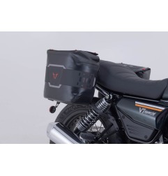 Il SW-Motech WP V-LOC 11/11 L è un sistema di borse laterali impermeabili dedicato ai modelli Moto Guzzi V7 dal 2020, ideale per commuting e touring a medio raggio. La costruzione in TPU garantisce impermeabilità senza compromessi e stabilità dimensionale anche a pieno carico. I telai laterali V-LOC specifici integrano una guida magnetica che facilita l’aggancio e lo sgancio rapido, migliorando l’esperienza d’uso. Ogni borsa da 11 L è dotata di chiusura a rotolo, tre attacchi MOLLE per l’espansione del carico, vano interno imbottito per tablet/laptop, quattro piedini per stabilità a terra ed elementi riflettenti discreti per la visibilità. Volume totale 22 L, peso complessivo ~2,3 kg.