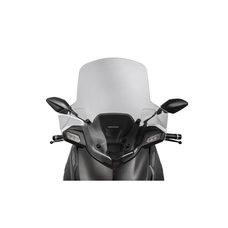 Il Isotta SC3461 Classic è un parabrezza maggiorato per Yamaha X-Max 300 Tech Max dal 2025, compatibile con movimentazione elettronica. Rispetto al parabrezza originale Yamaha (265 × 400 mm), offre una copertura nettamente superiore, pur risultando leggermente più basso della versione Artico Isotta, per un equilibrio ottimale tra protezione e visibilità. Costruito in PMMA spessore 3 mm, assicura trasparenza ottica, resistenza agli agenti atmosferici e stabilità aerodinamica.