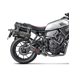 Le borse laterali CAMION per Yamaha XSR 700 sono perfette per chi cerca capienza contenuta, design compatto e resistenza agli agenti atmosferici. Realizzate in Tarpaulin PVC con inserti in cuoio idrorepellente, offrono 12 litri espandibili fino a 18 per lato, con scatola rigida interna, zip idrorepellenti e fodera interna. Richiedono staffa multifunzione dedicata (non inclusa). Ottime per uso urbano e brevi tour.