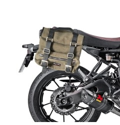 Le borse laterali Sahara in canvas verde per Yamaha XSR 700 offrono uno stile vintage perfettamente integrato con la linea rétro della moto. Realizzate in canvas tecnico cerato e rinforzate internamente, sono ideali per chi cerca praticità senza rinunciare all’estetica. La capienza è di 25 litri per lato, per un totale di 50 L, con apertura superiore e zip robuste. Compatibili con telai laterali dedicati (non inclusi), sono perfette per l’uso urbano o il turismo leggero.