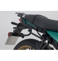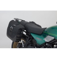 Il kit borse laterali Legend Gear LC2 per Kawasaki Z650RS dal 2023 è un set completo in edizione Black Edition progettato per offrire capienza e praticità senza rinunciare a un design classico e raffinato. Realizzato in napalon (pelle sintetica) e tela cerata resistente all’acqua, include due borse da circa 13,5 l ciascuna e i relativi telai portaborse SLC specifici per il modello, con sistema di aggancio rapido per un montaggio semplice e veloce. Ideali per commuting quotidiano o viaggi leggeri, queste borse si integrano perfettamente nella linea della moto.